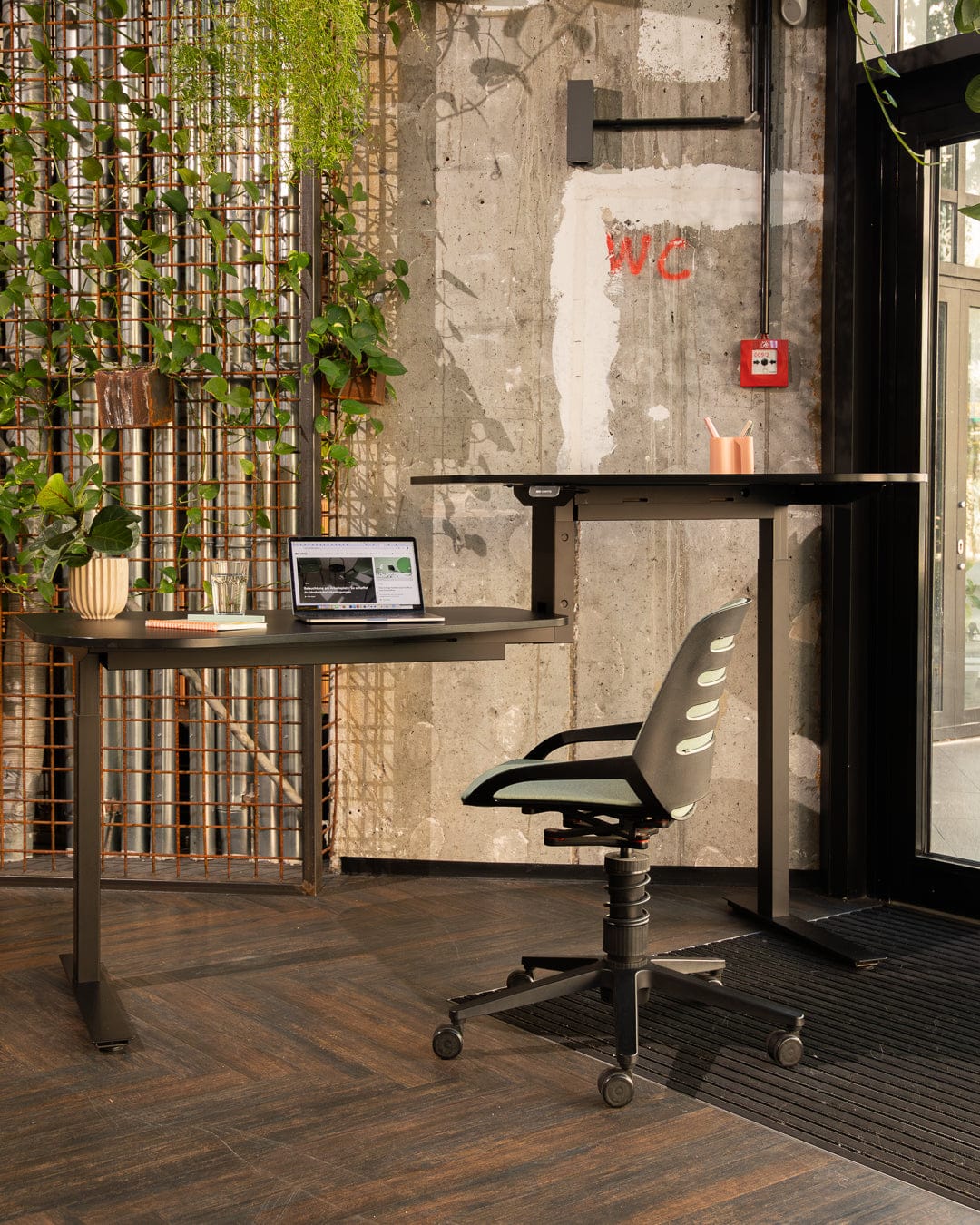 Im Erdgeschoss trifft urban work auf ergonomisches Design. Die Aeris Active Office Desks ermöglichen in Kombination mit den Aeris Numo Tasks einen maximalen Bewegungsraum für dynamisches Arbeiten. Die modularen Bürolösungen sind frei beweglich und lassen sich somit flexibel an jede Arbeitssituation anpassen.